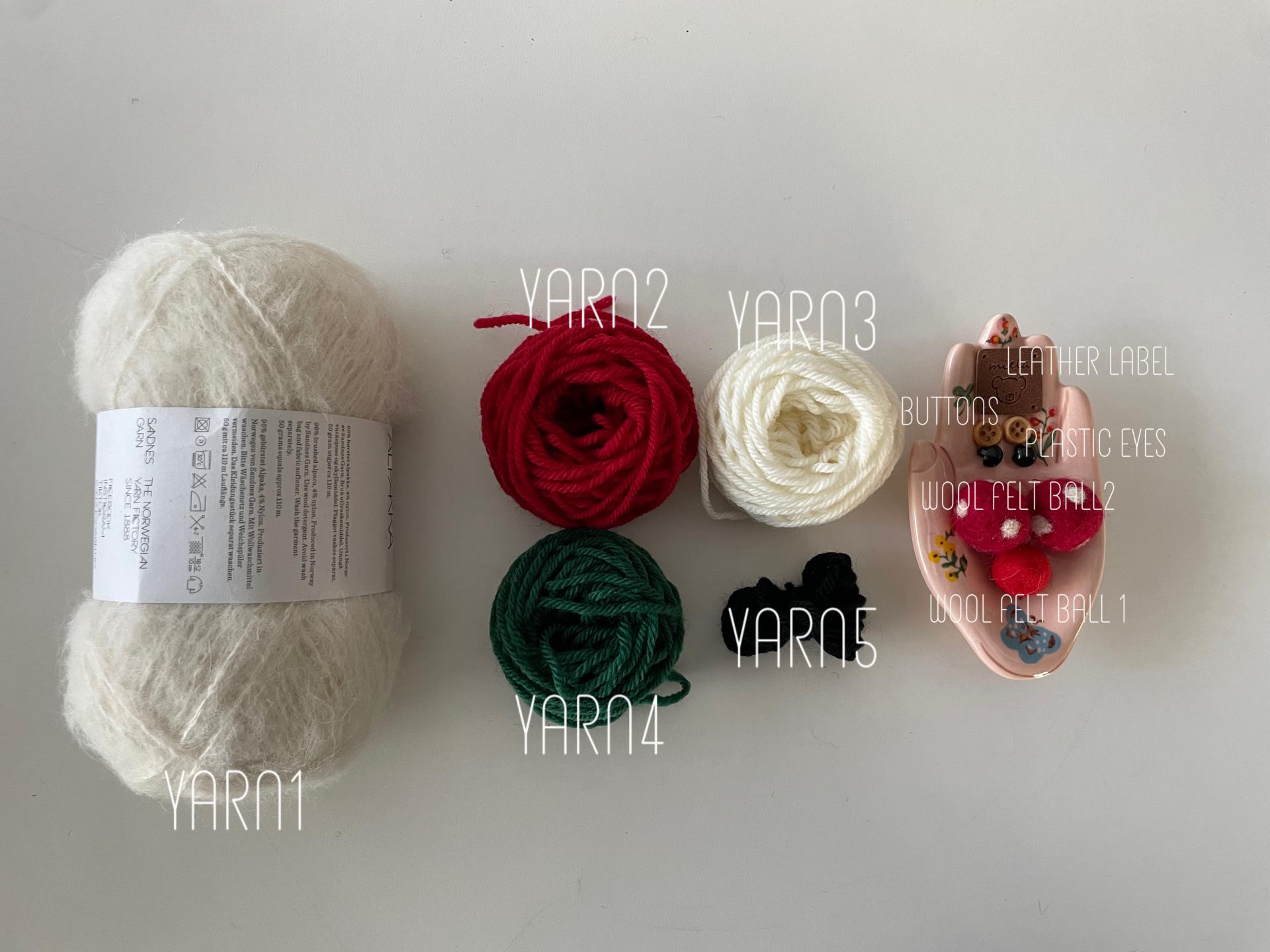 본 키트에는 대바늘·가위·돗바늘 등 도구와 인형솜이 포함되어 있지 않습니다.